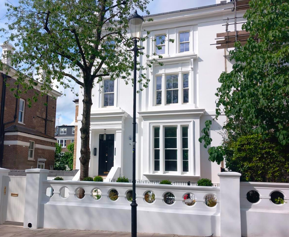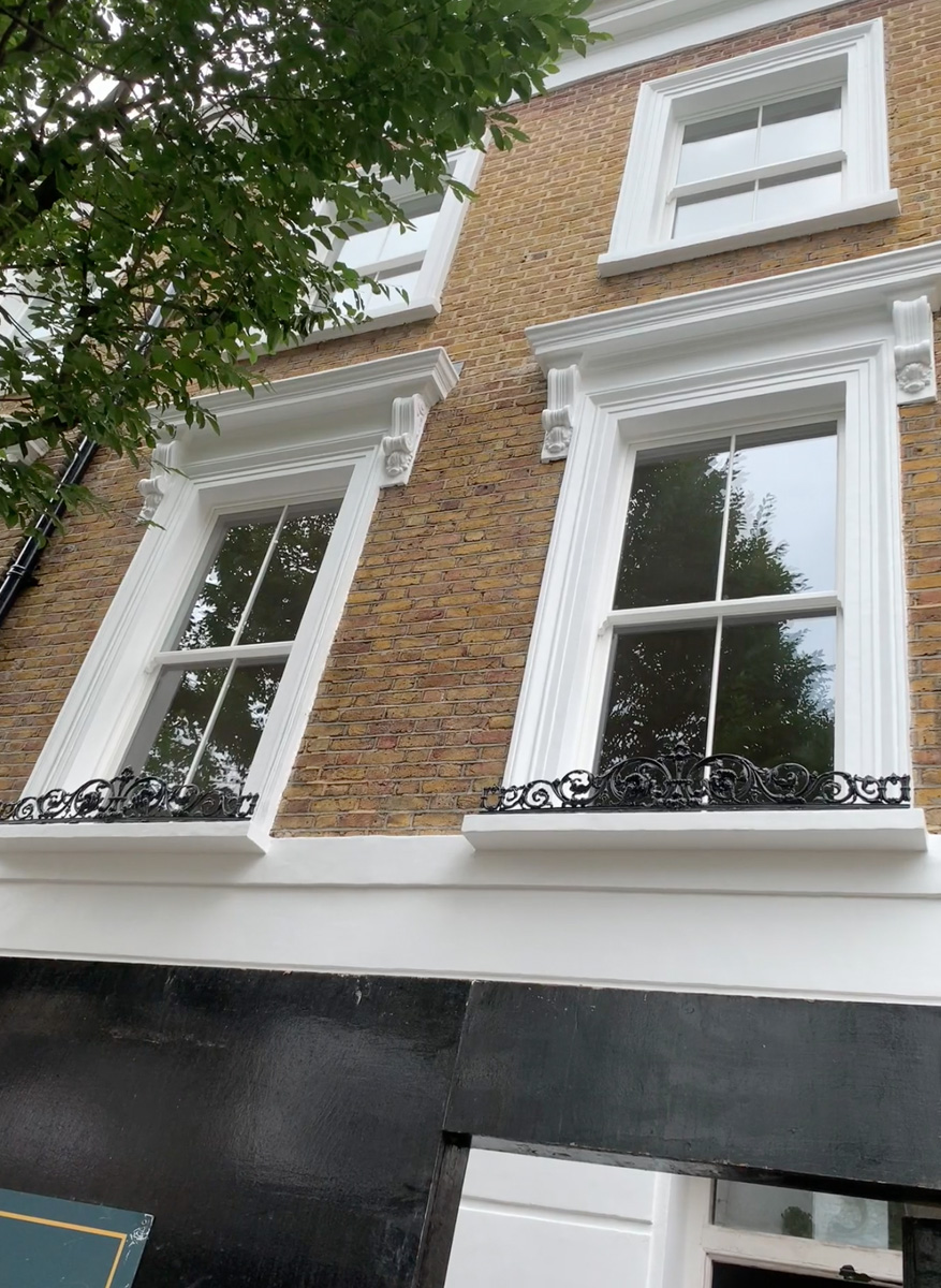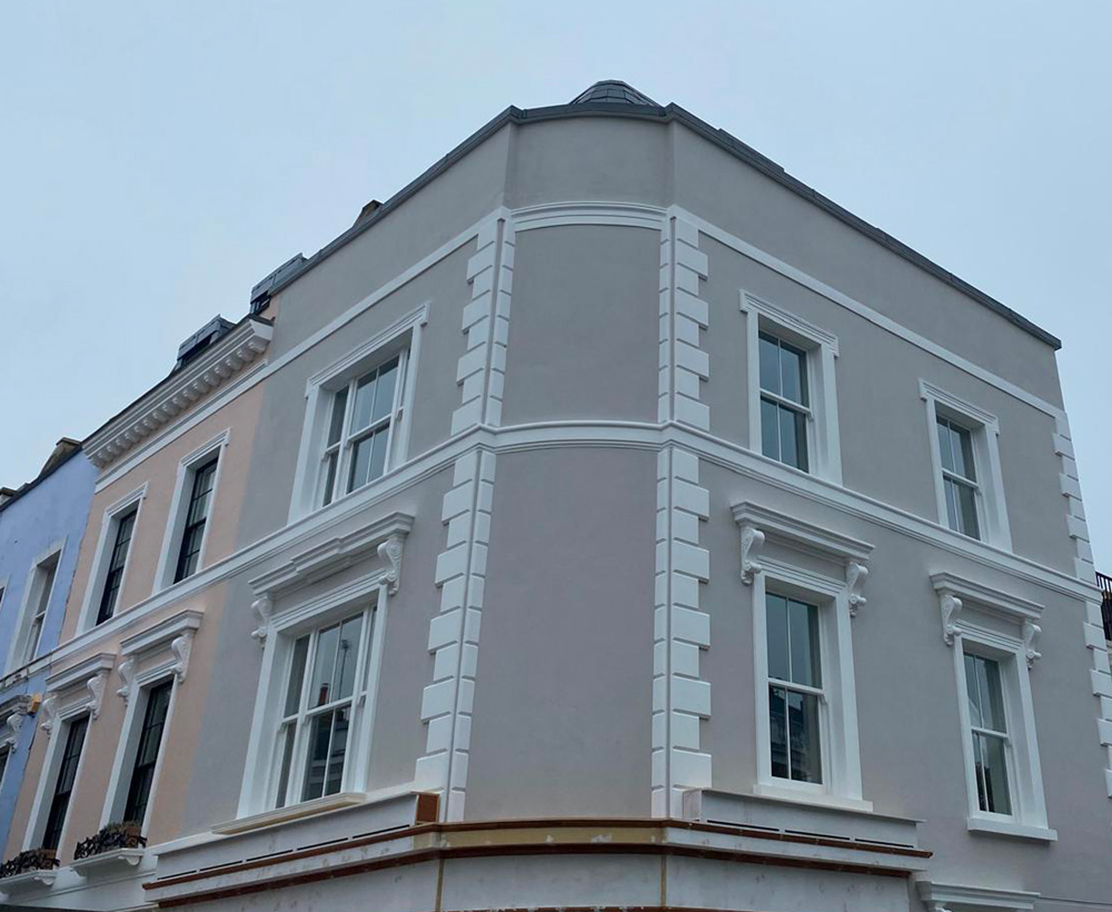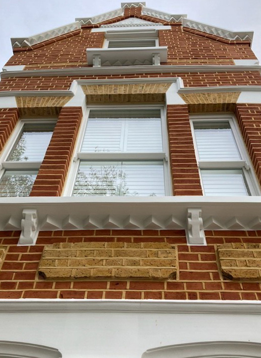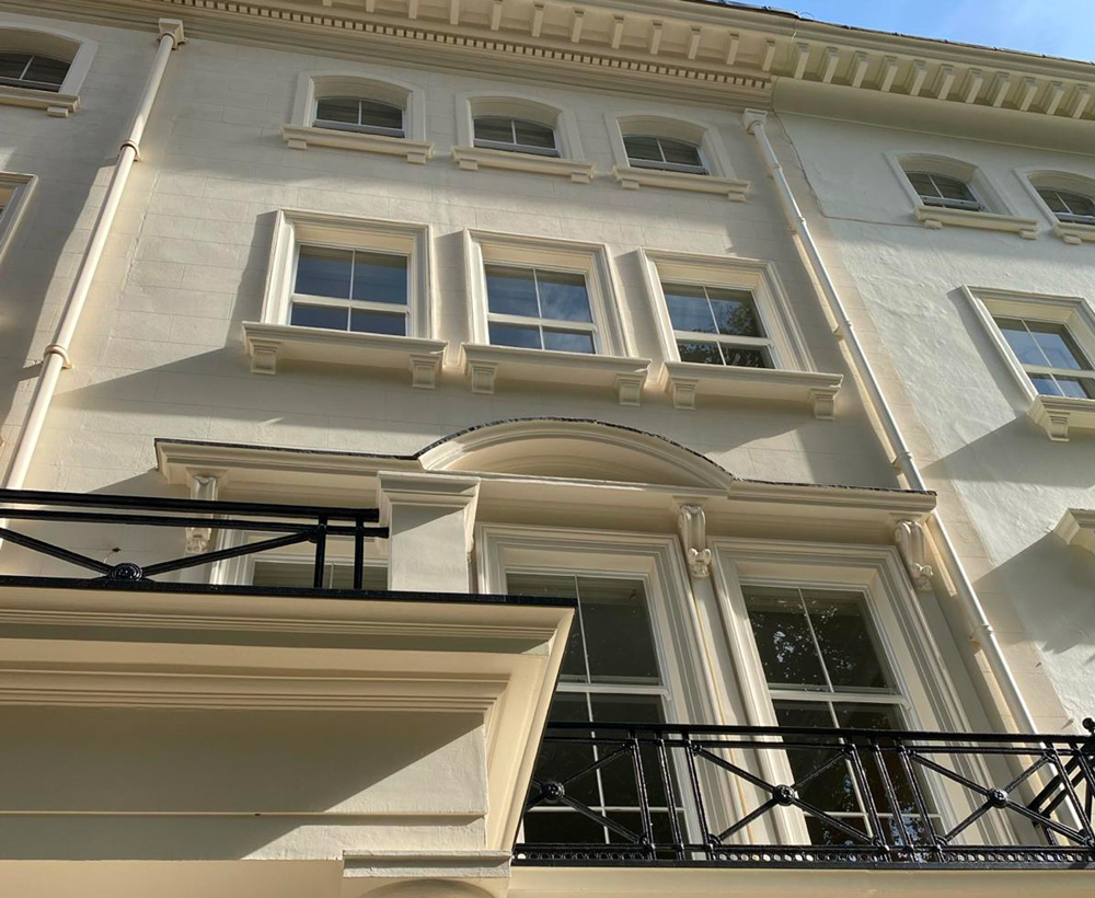The Williams Restoration team took on the whole job, from removing the cement render through to re-decoration. There's no avoiding the fact that this type of work is messy and sometimes noisy, but they tried hard to minimise nuisance to ourselves and our neighbours. They did a good job, and the facade now looks very smart and authentic.